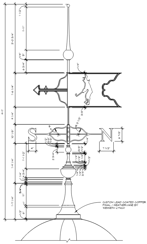 as my first experience with revit, i was in charge of translating the firm’s traditional detailing style from cad. in doing so, i took ownership of the cupola design with a custom finial. i selected the club’s mascot as the weathervane’s imagery, a PILGRIM LINING UP HIS SHOT, AS TO NOT SHY AWAY FROM ACKNOLEDGING THE INHERENT SOCIO-ECONOMIC HISTORIES TIED TO SUCH THINGS AS GOLF COURSES AND COUNTRY CLUBS.